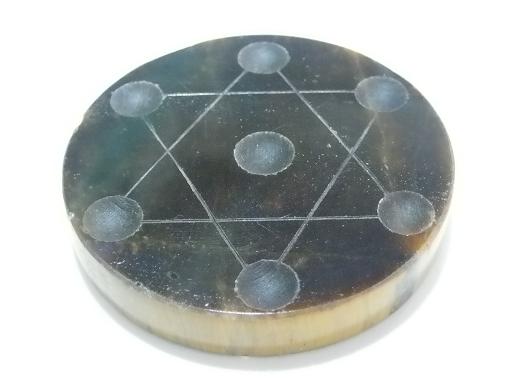 七星陣■オールインワン(小:約50mm) 盤のサイズの目安は50mm径×10mm厚ですが、手加工なため5mm程度の幅があります。手加工なため、七星模様は均等なバランスではありません。画像の品はサンプルです。 |