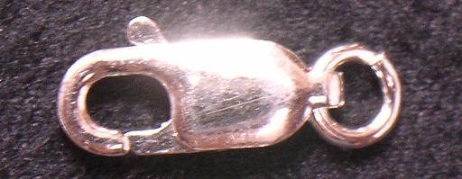 【ロブスターカン(銀製SV925)輪付】 輪を含まないサイズ、長10×幅4×厚2mmくらいで、輪の部分は外径4mm程度です。引き輪より少しだけ操作が簡単です。アジャスタチェーンまたは板ダルマと一緒にお使い下さい。 | |