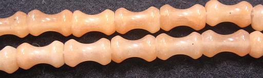 色むらのあるオレンジの地で、粒により濃淡があります。節のある竹のカタチで、10mm×5mmの粒がほとんどですが、多少大小があります。この品は「ニュージェイド」の名で入荷してきましたが、高い確率でアベンチュリンだと思います。手加工石なため、サイズ、デザイン、形状に、個性があります。